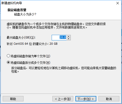 7.選擇磁盤大小,選擇默認20G即可