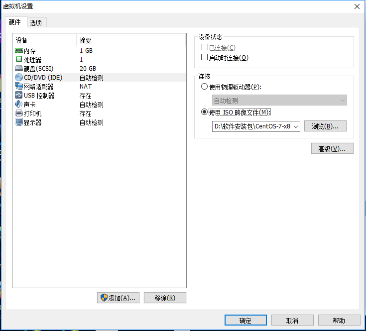 10.選擇使用ISO映像文件(M),并選擇已經下載的CentOS7的ISO文件