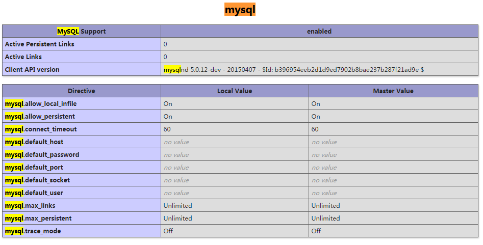 重新啟動php-fpm服務就能在phpinfo里看到MySQL擴展了: