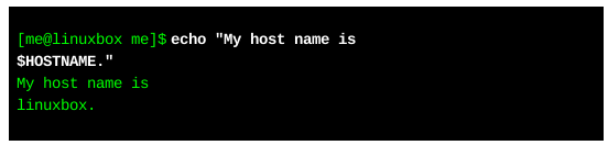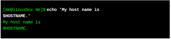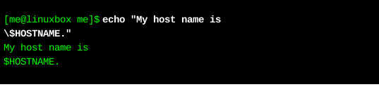 通過(guò)使用反斜杠符,shell解釋器忽略了對(duì)"$"符號(hào)進(jìn)行解釋。既然shell已經(jīng)忽略了"$",那么,shell解釋器也就不會(huì)對(duì)$HOSTNAME執(zhí)行字符替換了。