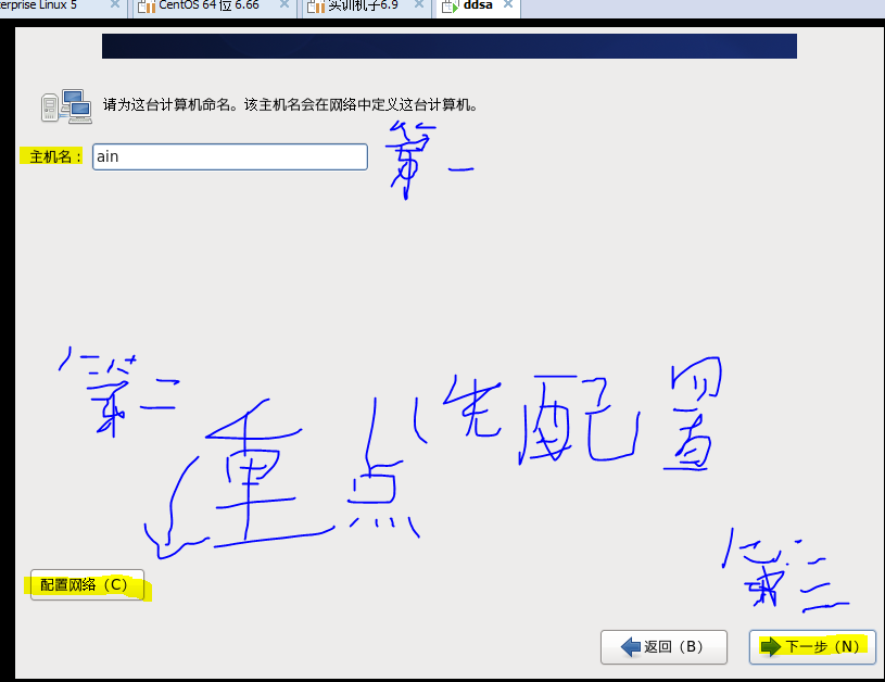 10.寫主機名 重點是配置網(wǎng)絡(luò) 配置完成再下一步
