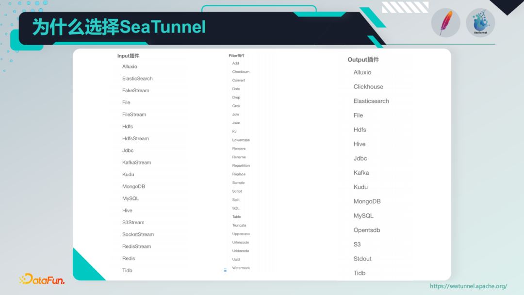 如下圖所示,SeaTunnel支持的插件非常豐富,日常所能用到的基本都有。