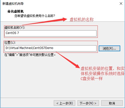 五、在命名虛擬機(jī)界面,設(shè)定虛擬機(jī)的名稱,選擇虛擬機(jī)文件安裝的位置,然后點(diǎn)擊“下一步”: