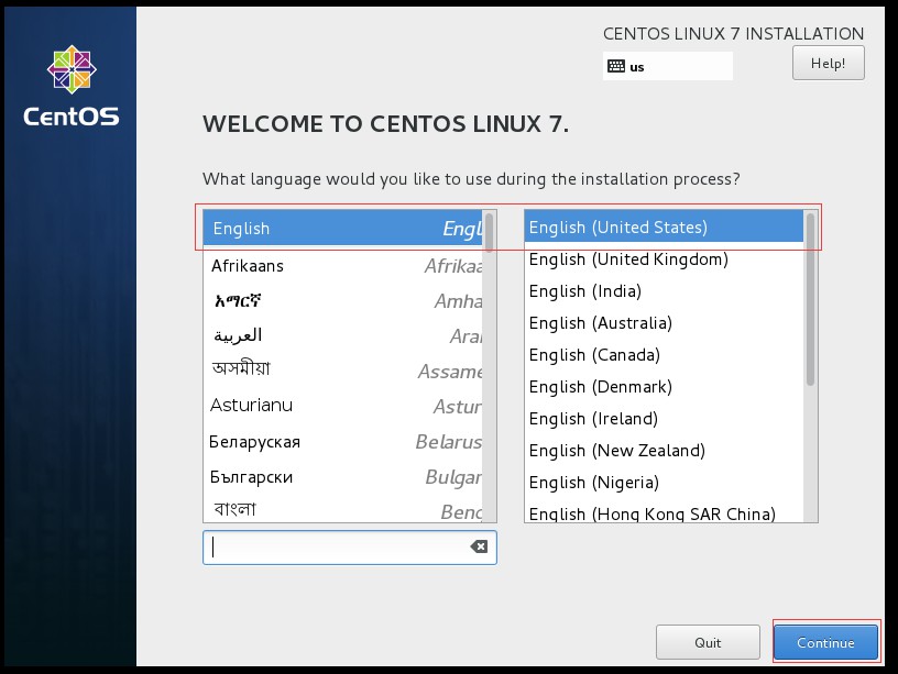 十六、進(jìn)入選擇語言界面,這里選擇默認(rèn)(可以根據(jù)自己需要進(jìn)行修改),然后點(diǎn)擊“continue”按鈕進(jìn)入下一界面:
