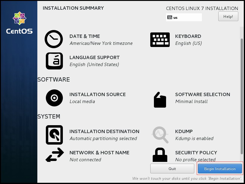 十九、這時(shí)點(diǎn)擊“Begin Installation”按鈕進(jìn)行安裝: