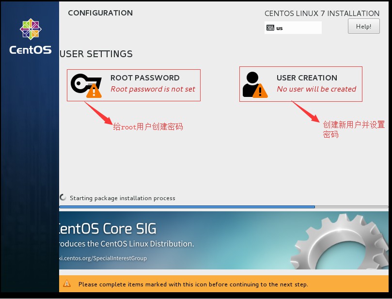 二十、進(jìn)入下一界面,這里需要給root用戶創(chuàng)建密碼,或者新創(chuàng)建一個(gè)用戶并設(shè)置密碼,這里選擇給root用戶創(chuàng)建密碼: