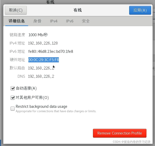 此時的可視化界面的網(wǎng)絡(luò)已經(jīng)不能使用了,所以只能通過命令來對ifcfg- ens33來進(jìn)行修改
