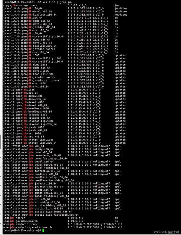首先,我們先搜索一下,看看 yum 上關(guān)于 jdk 有沒有,以及叫什么名字,我們可以通過 yum list命令就能列出來 相應(yīng)的服務(wù)器上所有的軟件包的名字(當(dāng)然不要就這樣敲,這樣敲會把所有東西都列出來,會非常多,我們搭配 grep 來使用:yum list | grep gdk),只搜尋jdk的: