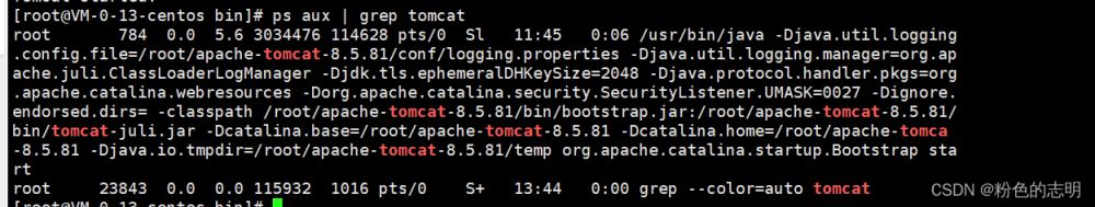 1: 查看 tomcat 進程:ps aux | grep tomcat,ps命令相當(dāng)于windows上的任務(wù)管理器,會打印出當(dāng)前主機的所有進程,grep tomcat按照 tomcat 關(guān)鍵字來進行匹配