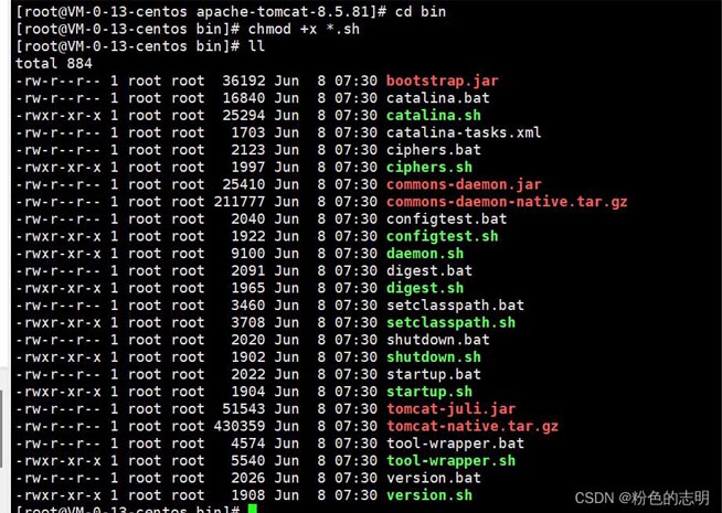4: 切換到 bin 目錄給所有 .sh加上可執(zhí)行權(quán)限:chmod+x *.sh