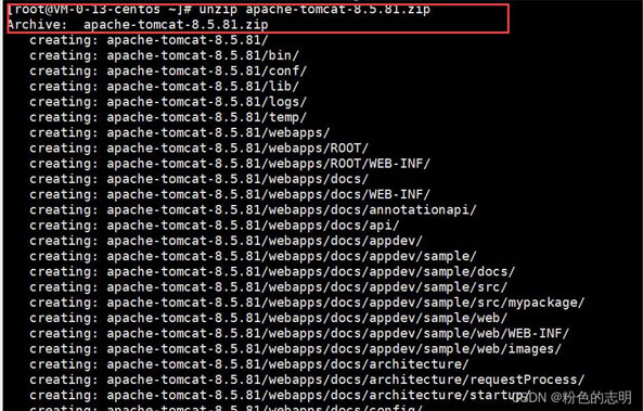 然后我們需要對 這個文件解壓縮:unzip [壓縮文件]