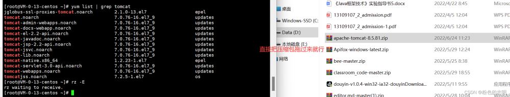 2: 把 zip 傳到 linux 上,直接拖進去就行,不行就yum install lrzsz命令先下載