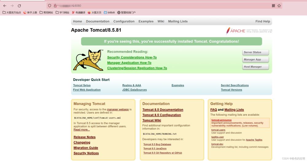 如果能訪問,就啟動成功 外網(wǎng)IP+8080(自己設(shè)的端口號)就行了