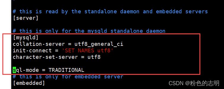 collation-server = utf8_general_ci init-connect='SET NAMES utf8' character-set-server = utf8 sql-mode = TRADITIONAL