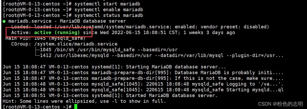 查看服務(wù)狀態(tài):systemctl status mariadb