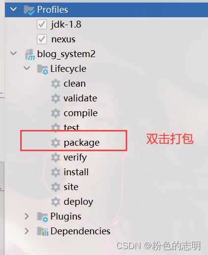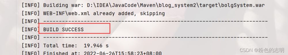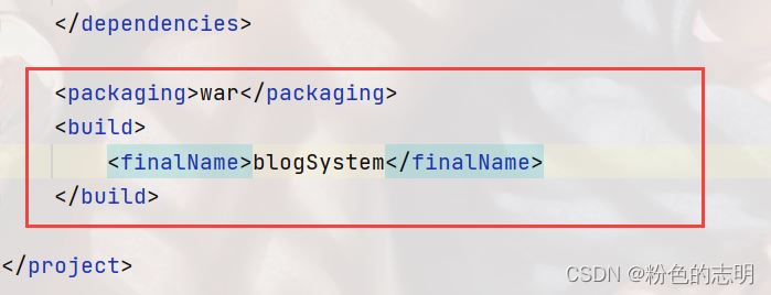 這里要用我們原始的打包過程,需要基于 maven 的 package 操作來生成 war 包!首先就是先在pom.xml里面設(shè)置成war包,名字就設(shè)置為 blogSystem