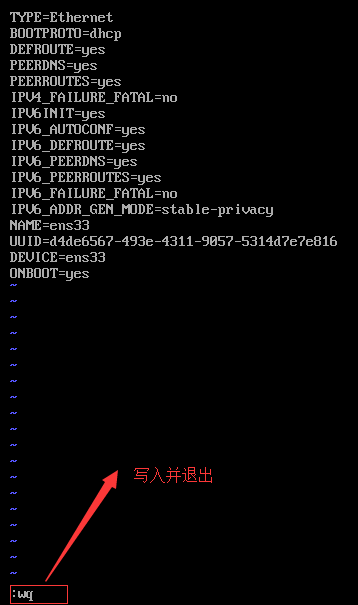 先按一次鍵盤上面的退出鍵(Esc),在輸出鍵盤上面的冒號(hào)“:”,然后輸入wq。w:write表示寫。q:quit表示退出。