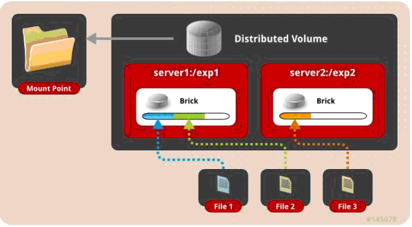 一、 默認(rèn)模式,既DHT, 也叫 分布卷: 將文件已hash算法隨機(jī)分布到 一臺(tái)服務(wù)器節(jié)點(diǎn)中存儲(chǔ)。