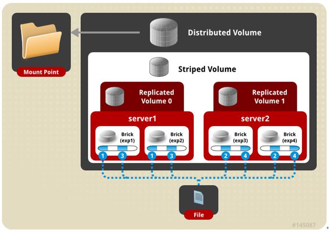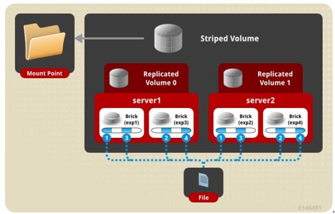 gluster volume create test-volume stripe 2 replica 2 transport tcp server1:/exp1 server2:/exp2 server3:/exp3 server4:/exp4