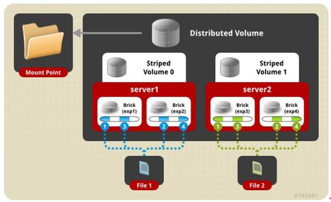 gluster volume create test-volume stripe 2 transport tcp server1:/exp1 server2:/exp2 server3:/exp3 server4:/exp4