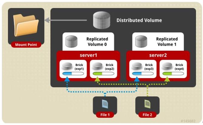 gluster volume create test-volume replica 2 transport tcp server1:/exp1 server2:/exp2 server3:/exp3 server4:/exp4