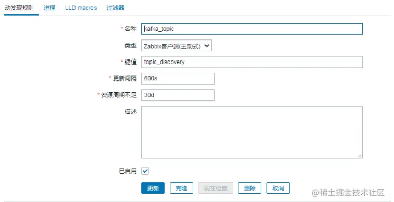 到此這篇關于Zabbix對Kafkatopic積壓數(shù)據(jù)監(jiān)控的文章就介紹到這了,更多相關ZabbixKafka監(jiān)控內(nèi)容請搜索本站以前的文章或繼續(xù)瀏覽下面的相關文章希望大家以后多多支持本站!