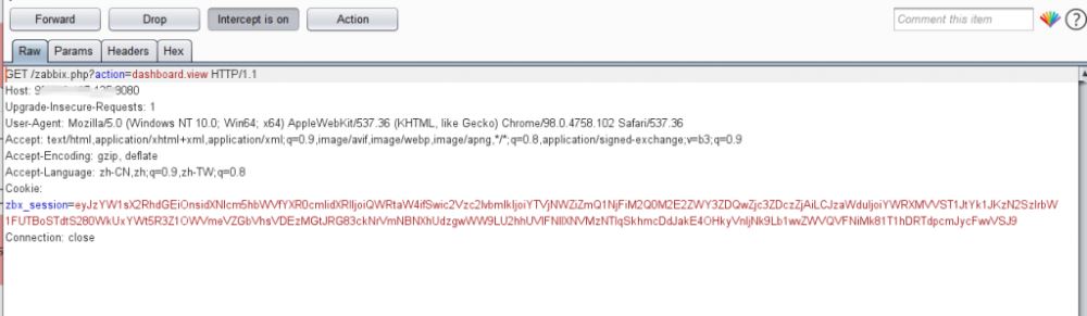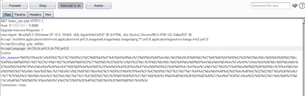 5、請求index_sso.php,在http請求頭中構造payload,將zbx_session的值替換為url編碼后的payload