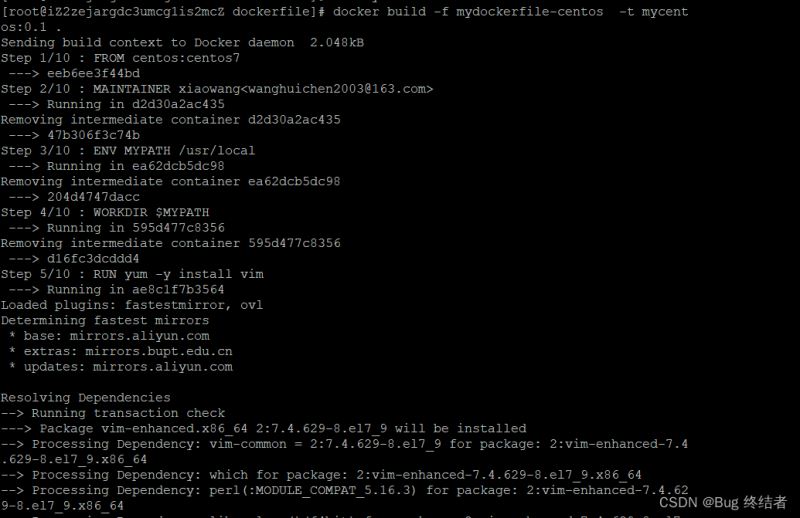 # 注意后面有一個 . 代表當(dāng)前目錄 docker build -f mydockerfile-centos -t mycentos:0.1 .