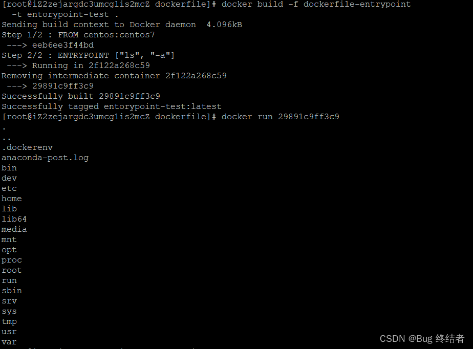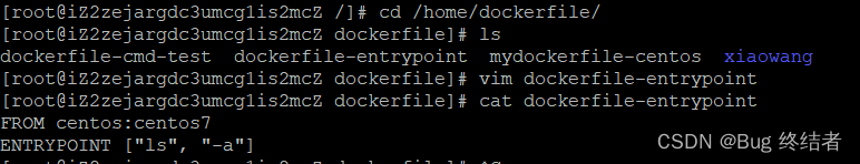 cd /home/dockerfile vim dockerfile-entrypoint # 寫入以下命令 FROM centos:centos7 ENTRYPOINT ["ls", "-a"]