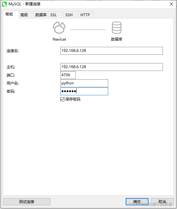 # 創(chuàng)建 python 用戶,密碼為123456,允許在任意機器上登錄 CREATE USER 'python'@'%' IDENTIFIED BY '123456';