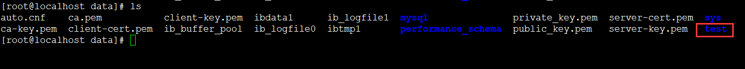 然后我們到掛載的/home/mysql/data目錄下看test會(huì)不會(huì)出現(xiàn)