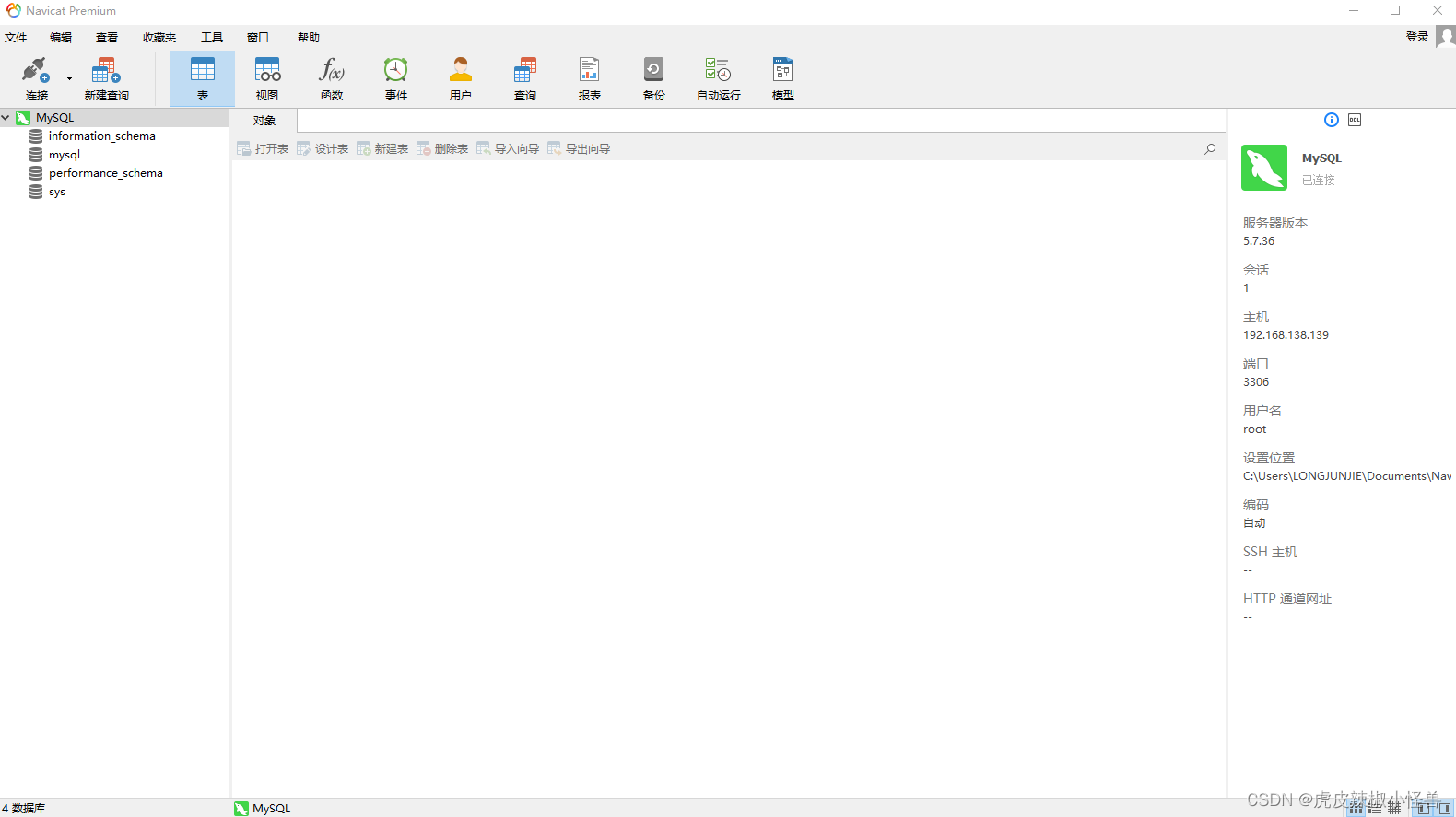 啟動(dòng)成功后,使用Navicat測(cè)試連接