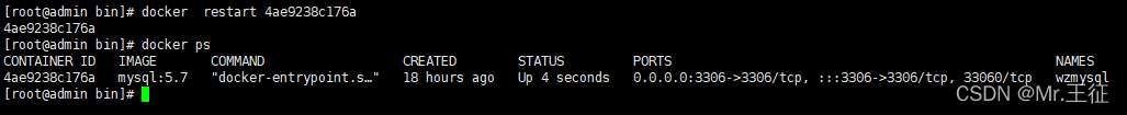 7.重啟mysql容器,且查看是否啟動(dòng)成功
