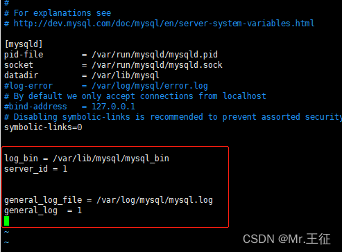 5.編輯配置文件開啟binlog,設(shè)置log文件