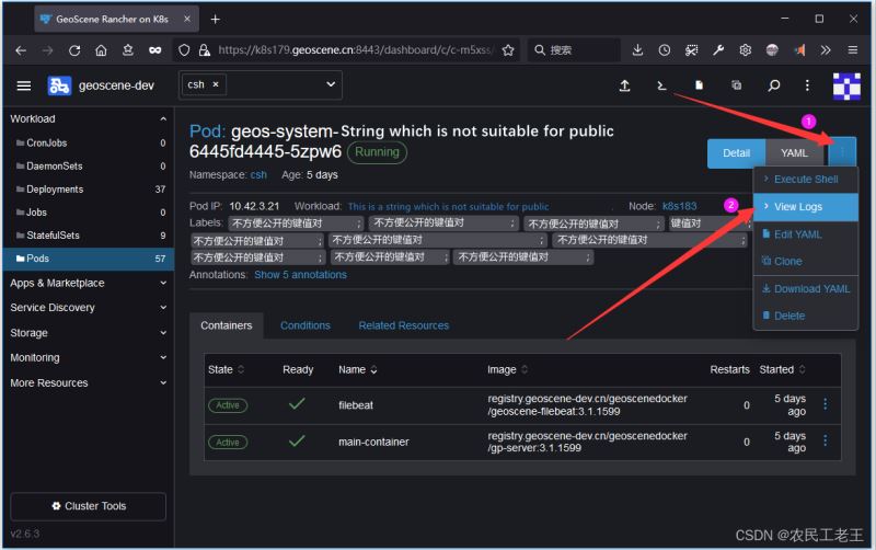 注意:在當(dāng)前常用的2.5和2.6兩個(gè)rancher版本中,有些許差異,2.5默認(rèn)就能查看到全部日志,2.6則需要設(shè)置幾個(gè)參數(shù)。