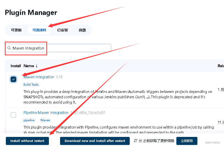 Manage Jenkins -> Manage Plugins -> filter搜索:Maven Integration