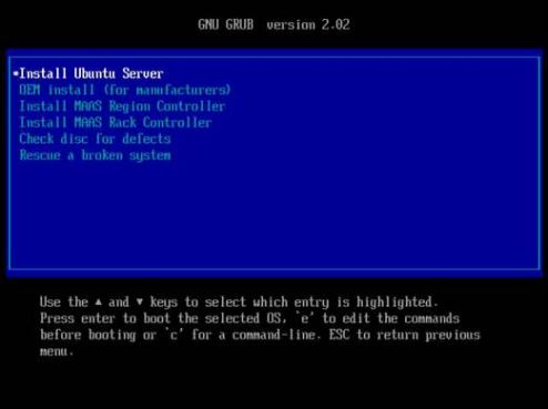 步驟 23: 重啟服務(wù)器后選擇進(jìn)入U(xiǎn)buntu。