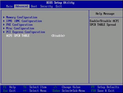 步驟 1 : 進(jìn)入BIOS,在Advanced界面中,設(shè)置ACPI SPCR TABLE為Disable。