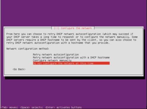 步驟10:進(jìn)入網(wǎng)絡(luò)配置界面,選擇暫不配置網(wǎng)絡(luò),待進(jìn)入OS后再進(jìn)行配置。