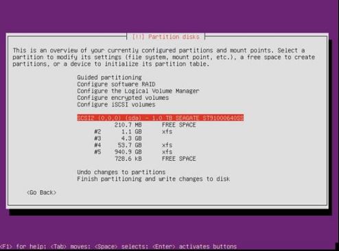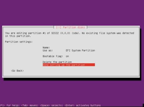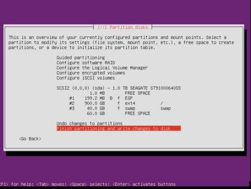 步驟 17: 所有分區(qū)創(chuàng)建完成后,選擇Finish paritioning and write changes to disk,按Enter。