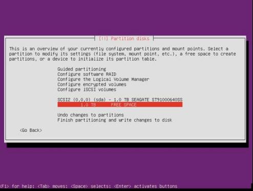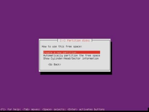 步驟 16: 進(jìn)入手動(dòng)分區(qū)界面,開(kāi)始創(chuàng)建分區(qū)。選擇FREE SPACE,按Enter。