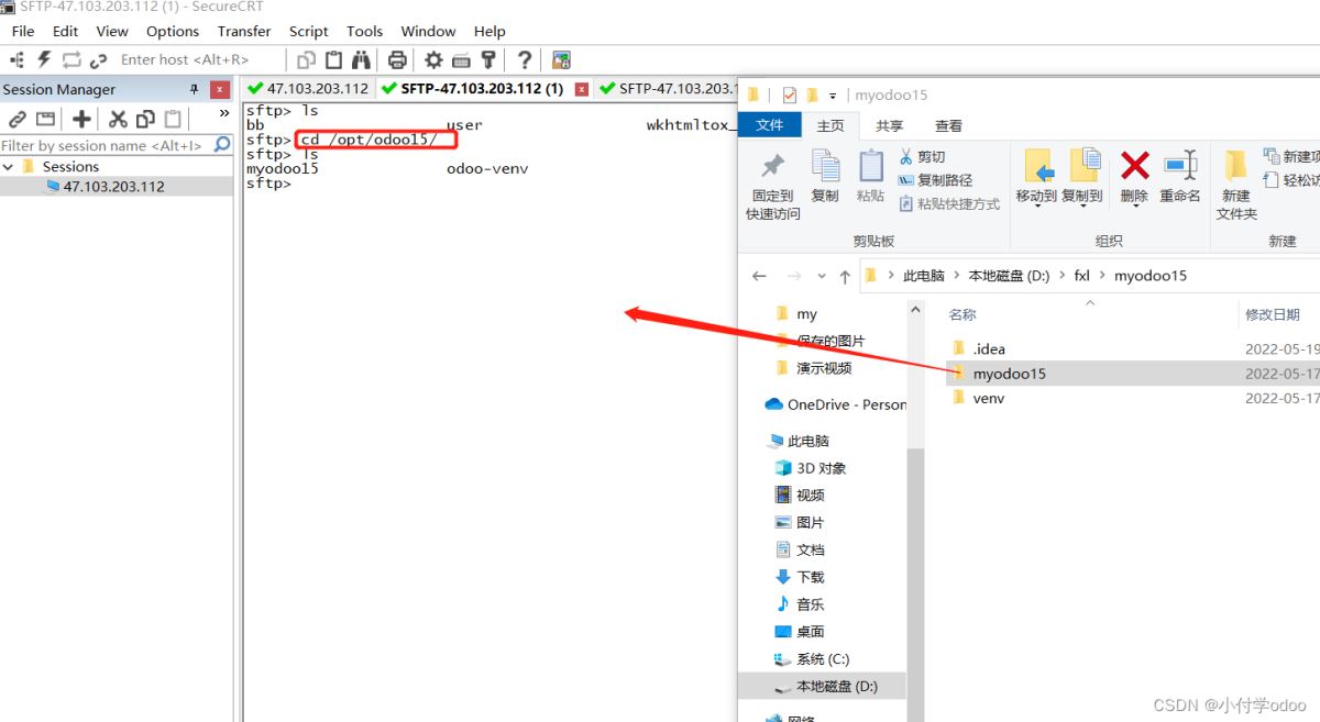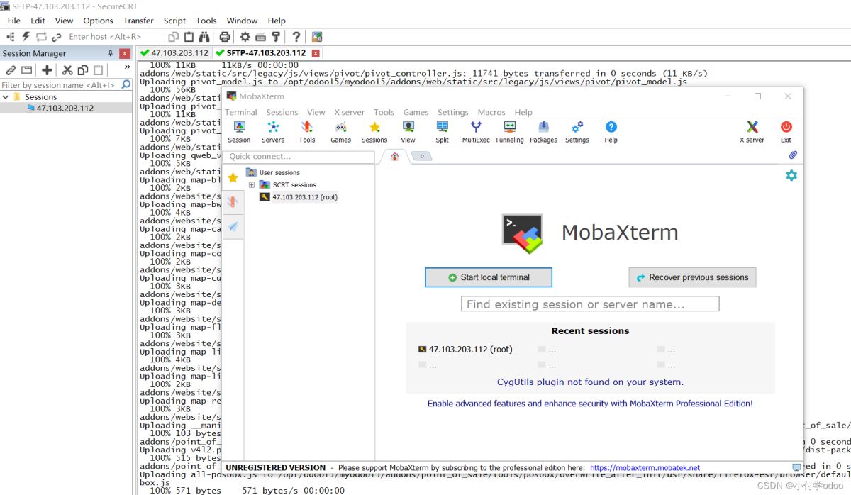 推薦使用CRT工具 alt+p傳輸文件:【cd到opt/odoo15里邊,把你的代碼直接拖進(jìn)去即可】