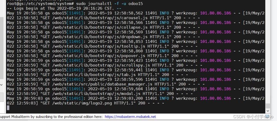 sudo journalctl -f -u odoo15