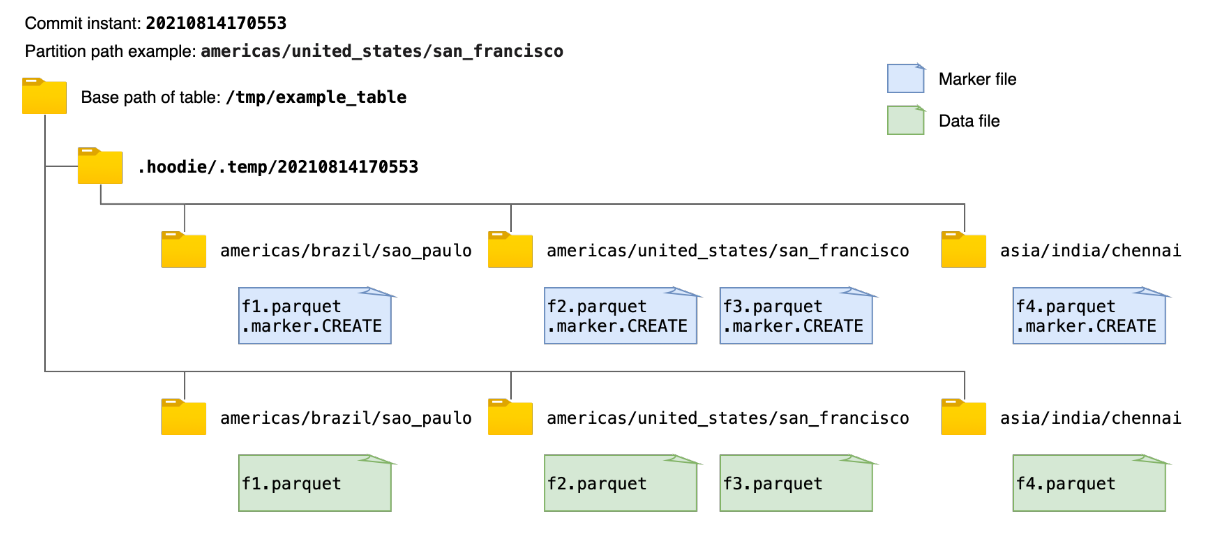 例如標(biāo)記91245ce3-bb82-4f9f-969e-343364159174-0_140-579-0_20210820173605.parquet.marker.CREATE指示相應(yīng)的數(shù)據(jù)文件是91245ce3-bb82-4f9f-969e-343364159174-0_140-579-0_20210820173605.parquet