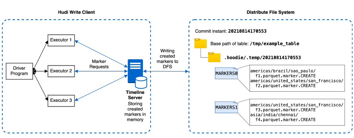 Hudi 支持在寫入時(shí)自動(dòng)清理未成功提交的數(shù)據(jù)。Apache Hudi 在寫入時(shí)引入標(biāo)記機(jī)制來有效跟蹤寫入存儲(chǔ)的數(shù)據(jù)文件。 在本博客中,我們將深入探討現(xiàn)有直接標(biāo)記文件機(jī)制的設(shè)計(jì),并解釋了其在云存儲(chǔ)(如 AWS S3、Aliyun OSS)上針對(duì)非常大批量寫入的性能問題。 并且演示如何通過引入基于時(shí)間軸服務(wù)器的標(biāo)記來提高寫入性能。