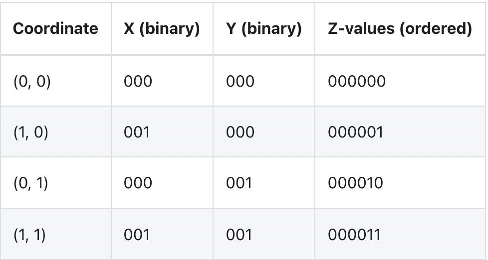 以類似的方式,希爾伯特曲線允許將 N 維空間中的點(diǎn)(我們表中的行)映射到一維曲線上,基本上對(duì)它們進(jìn)行排序,同時(shí)仍然保留局部性的關(guān)鍵屬性,在此處閱讀有關(guān)希爾伯特曲線的更多詳細(xì)信息,到目前為止我們的實(shí)驗(yàn)表明,使用希爾伯特曲線對(duì)數(shù)據(jù)進(jìn)行排序會(huì)有更好的聚簇和性能結(jié)果。