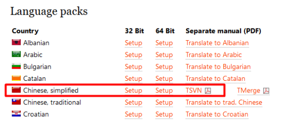 接下來是TortoiseSVN漢化包,跟TortoiseSVN同一個(gè)頁面要點(diǎn)擊https://tortoisesvn.net/downloads.html