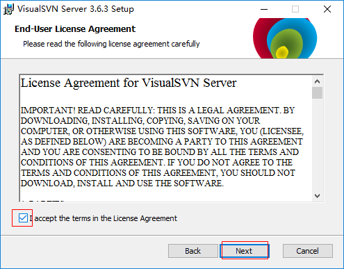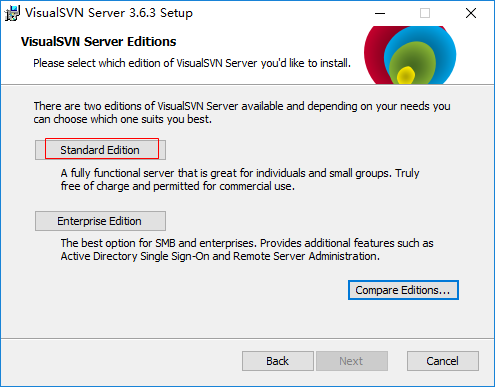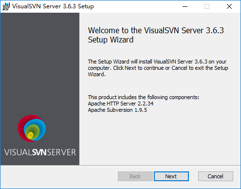 1.我們先安裝:VisualSVN-Server-3.6.3-x64.msi