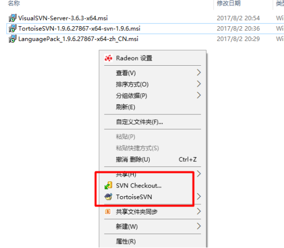 2.安裝:TortoiseSVN-1.9.6.27867-x64-svn-1.9.6.msi(svn客戶端),這個(gè)比較簡單,一直next 就行