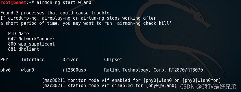#開啟網(wǎng)卡監(jiān)控 airmon-ng start wlan0